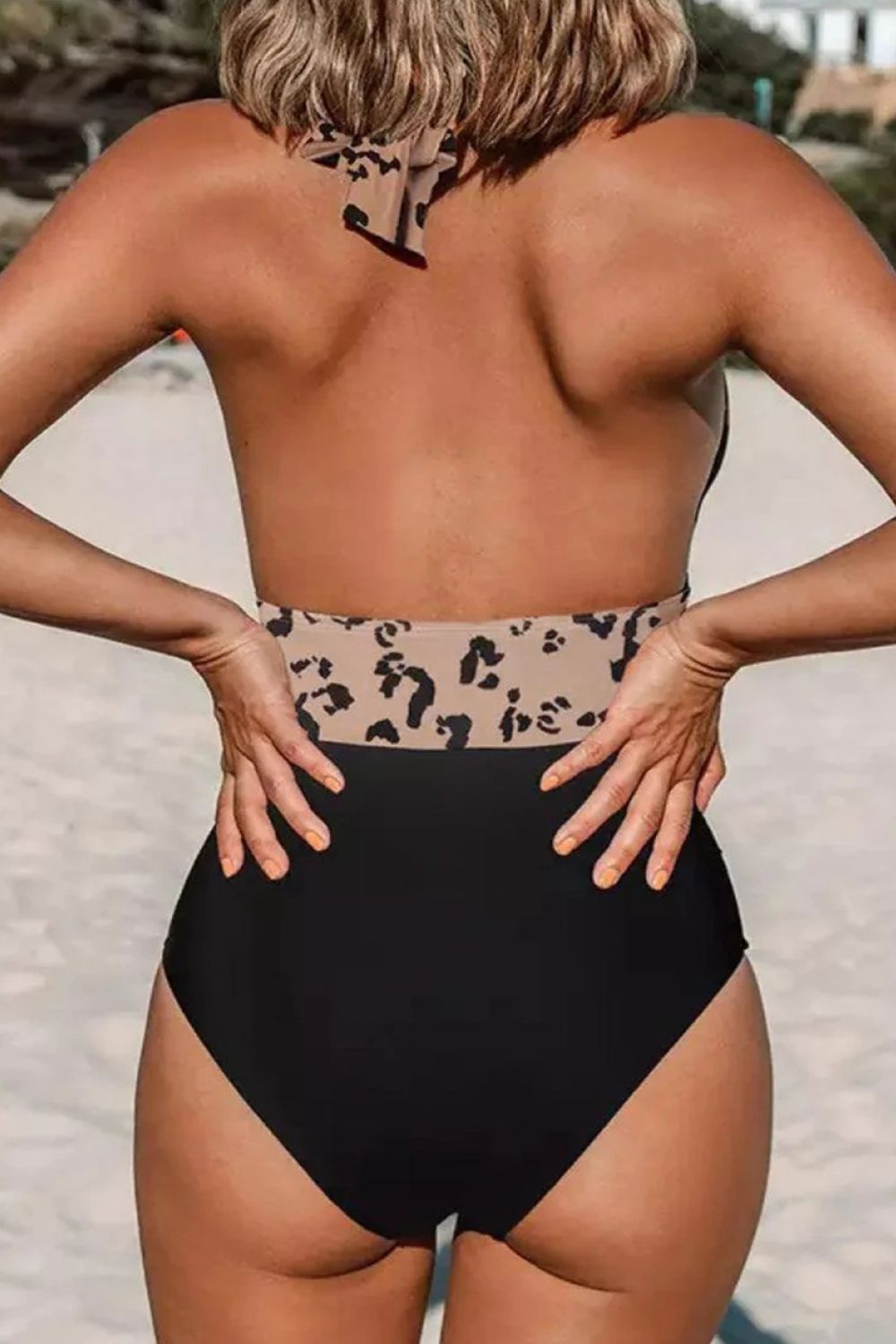 • Leopard Halter Neck Sleeveless One-Piece Swimwear