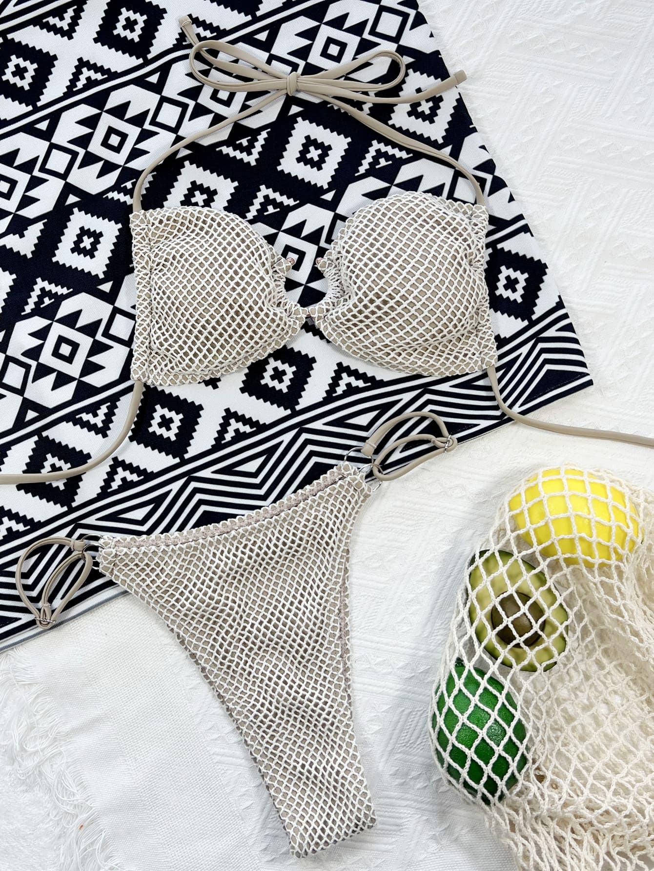 • Halter Neck Fishnet Bikini Set