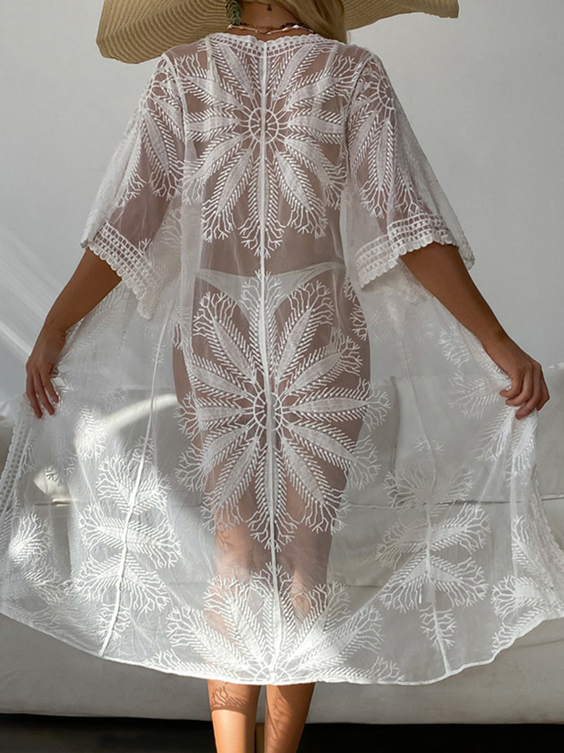 • Lace V-Neck Half Sleeve Cover-Up